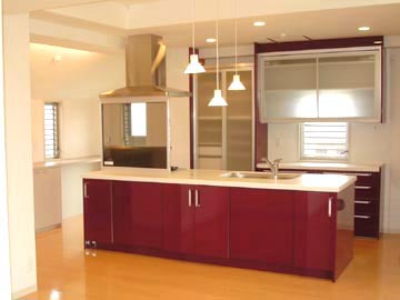 | アイランドタイプのキッチンの奥にはカウンター収納があり、そこで家事や、ちょっとしたデスクワークなどができるようになっている。 |