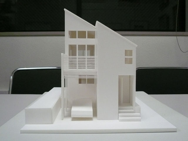敷地は川沿いの閑静な住宅街にある。本計画は一戸建ての賃貸住宅の計画であり、最小限の敷地の中にコンパクトかつ機能的なプラニングが行われた。また、内部からつづくウッドデッキや吹抜け、ロフト、ハイサイド窓を設ける事で面積以上により広く快適な内部空間になるよう計画されている。外観は、ウッドデッキに設けられた目隠しのルーバーがアクセントになっている。