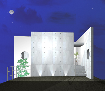 開口部を設けないコンクリートの壁が建物に存在感をあたえるデザインになっている。夜はライトアップすることで神秘性と静寂を持った空間が現れる。
