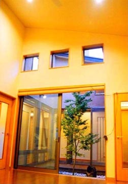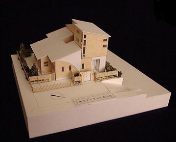敷地は緑豊かな横浜の山手にあり、大谷石の擁壁と植物と景石に囲まれ、2階からはランドマークタワーなど港横浜の風景が一望できる恵まれた環境の場である。 |