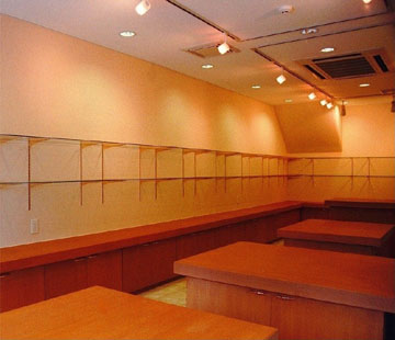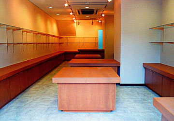 漆器店の内装工事を行った。ガラス製の陳列棚と木の収納カウンターなどをシンプルに配置した。