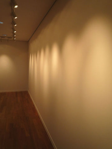 画廊の計画で重要な事は何より飾る絵が映える事ですが、日々のメンテナンスが容易な事も非常に重要になります。例えば毎回壁に絵を付け替えていくと段々と壁に釘後や凹凸が目立ってきてしまいます。そういった時にオーナー様がメンテナンスを容易に行えるよう工夫をしなければいけません。