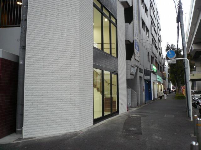 町の一角に、まるで取り残された様に資材置き場として使われていた敷地面積わずか16uの極小三角形の敷地に立つ貸し店舗ビルである。
