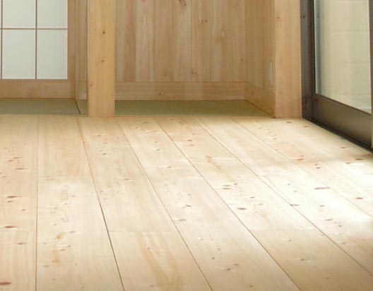 | ↑ホルムアルデヒドの心配がない無垢のフローリングを使用した住宅。 |